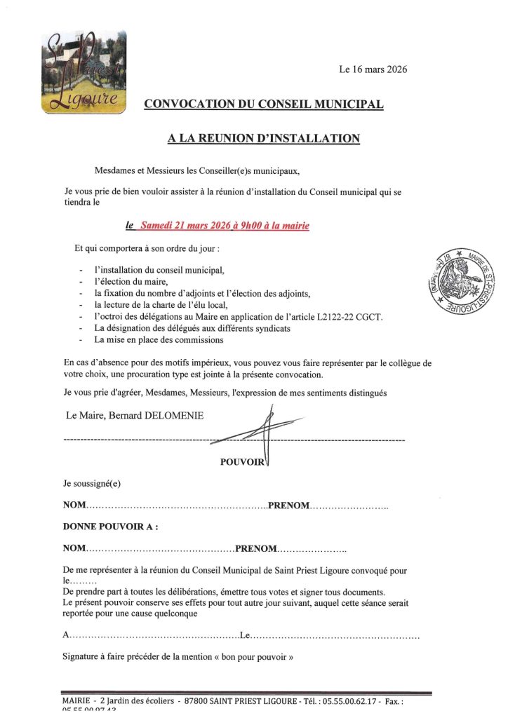 CONVOCATION DU CONSEIL MUNICIPAL